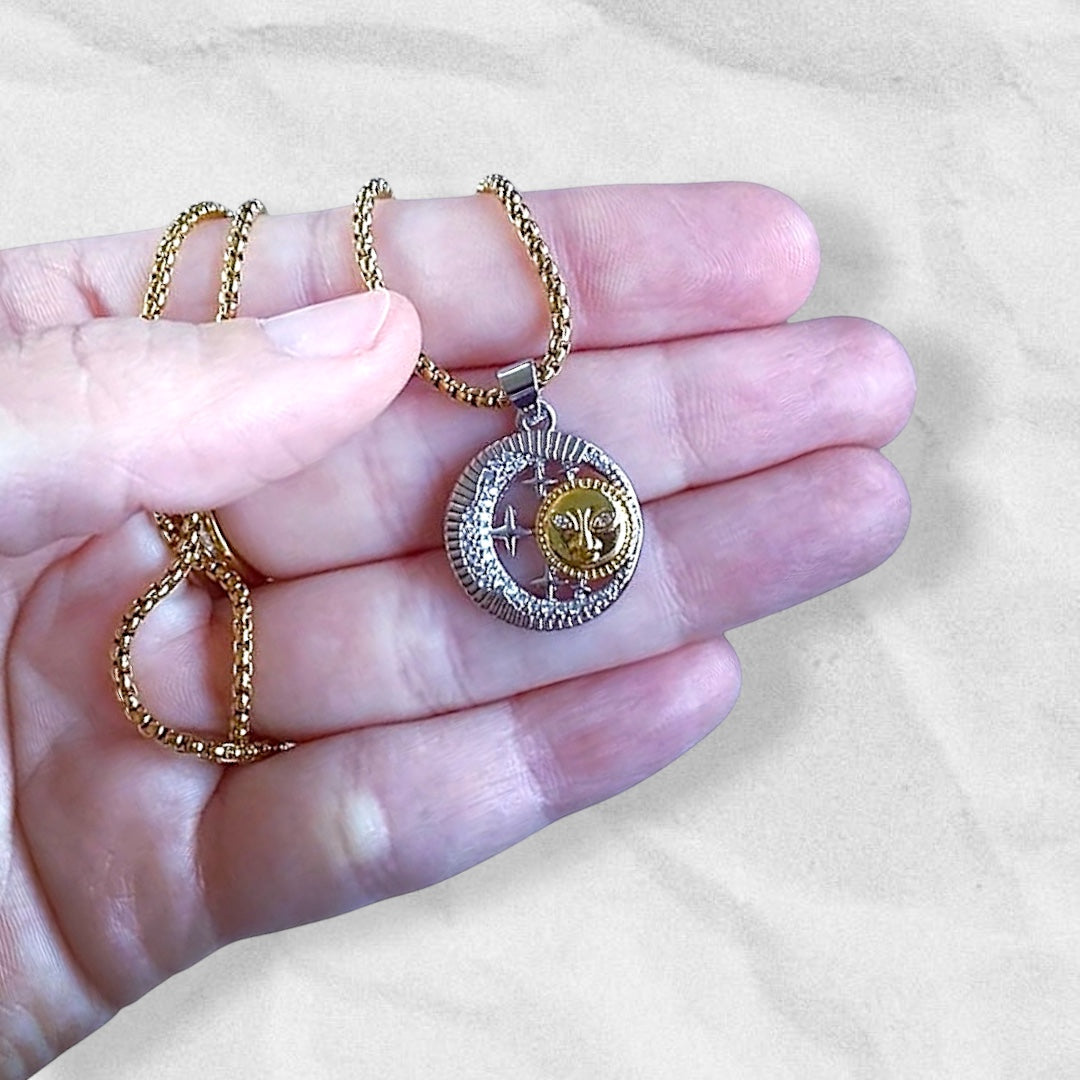 MOON BY SUN reúne esa unión imposible en un delicado colgante, que combina una luna plateada engastada con pequeños cristales y un sol dorado radiante. Juntos crean un equilibrio perfecto entre la energía de lo masculino y lo femenino, la luz y la oscuridad, lo terrenal y lo espiritual.